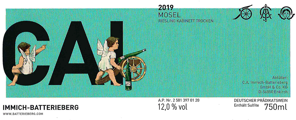 Benannt nach Carl August Immich bietet schon der Gutswein CAI Riesling als trockener Kabinett reinsten Riesling-Genuss. Die Trauben stammen aus 8 verschiedenen Parzellen unterschiedlichster Art, aber alle mit Schiefer-Terroir. Er wird komplett im Edelstahltank vergoren und ausgebaut. Feine gelbfruchtige Nase mit Noten von Mirabelle, Quitte und Minze. Am Gaumen saftige Art mit schöner Schiefermineralität, schlank im Körper (mit nur 10,5% vol. Alkohol), aber stark im Ausdruck. Sehr trocken, mit weniger als 2 g Restzucker, aber dank seines hohen Extraktes bestens gepuffert und ohne jede Sprödheit. Ein Klasse Einstieg in die betörende Welt der Kollmann'schen Rieslinge!