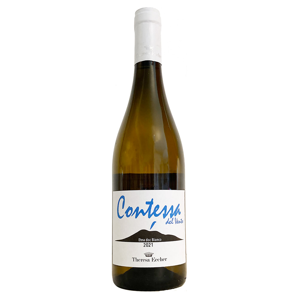 Der trockene Weißwein Contessa del Vento von Theresa Eccher stammt von den Nordhängen des Vulkans Ätna. Er wird aus 100% Carricante (die zu erfreulich niedrigen Alkoholwerten neigt) erzeugt und im Edelstahl kühl vergoren. Im Duft zeigt er attraktive Aromen von gelber Birne und Kapstachelbeeren. Auch am Gaumen dominiert die Birnenfrucht, die von einer feinen, reifen Säure getragen wird. Rund und weich, ja geradezu geschmeidig fließt er in ein überzeugend langes, leicht salzig-mineralisch geprägtes Finish.