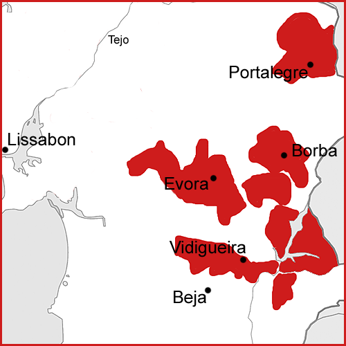 Der Alentejo, die größte Provinz Portugals, ist keine geschlossene Weinbauregion. Nur gelegentlich wird die Landschaft durch grüne Rebinseln aufgelockert. Das östlich der Hauptstadt Lissabon gelegene, vom Fluss Tejo, der spanischen Grenze und der Algarve eingerahmte, hügelige Gebiet war lange Zeit in den Augen der Portugiesen das Land "des schlechten Brotes und der schlechten Weine". Dies hat sich jedoch zumindest bezüglich Wein drastisch geändert, denn im Alentejo hatte die Qualitätsrevolution im Weinbau Portugals ihren Ursprung. Anfangs gab es nur regionale Zonen ohne DOC-Gebiete. Mittlerweile gibt es heute derer fünf: Portalegre im Norden des Alentejo, und Borba, Redondo, Vidigueira und Reguengos, die alle nördlich der Stadt Beja bzw. um die Hauptstadt Evora herum zu finden sind.