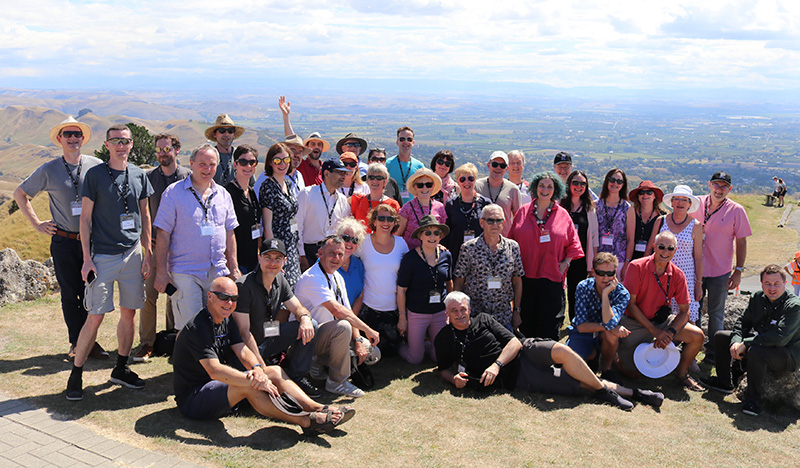 40 Masters of Wine posieren fürs Gruppenfoto auf dem Te Mata Peak (2019)