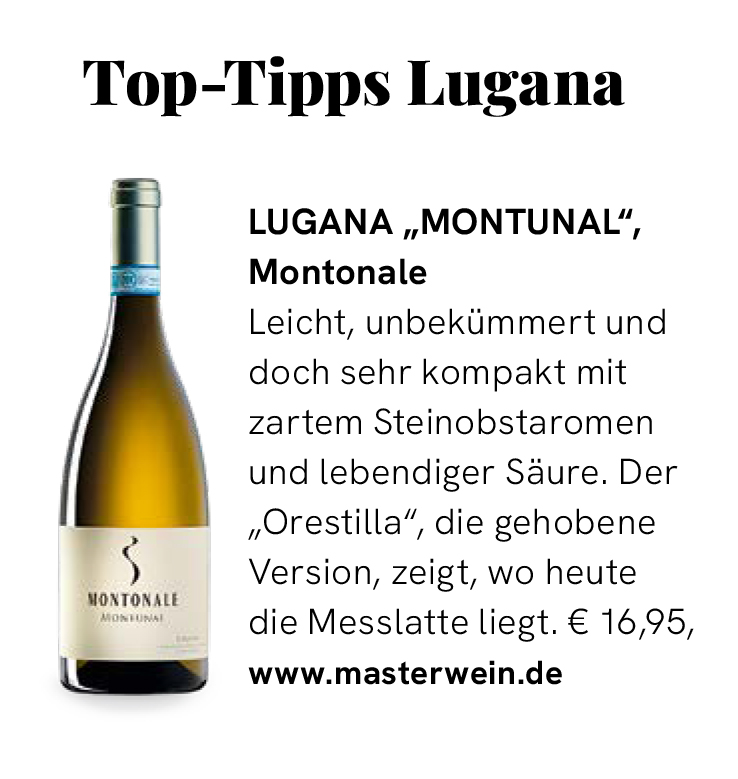 Daher empfiehlt er, sich auf die besseren Weine der Region zu fokussieren. Allen voran der Lugana Montunal von Montonale. Er bezeichnet gar den Spitzen-Lugana Orestilla von Montonale als "Messlatte" für alle anderen Weine.