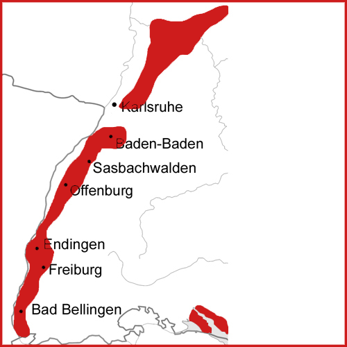 Deutschlands südlichstes Anbaugebiet Baden ist gleichzeitig auch das wärmste ("von der Sonne verwöhnt"). Die rund 15.800 Hektar Rebfläche werden in 9 Bereiche untergliedert:
