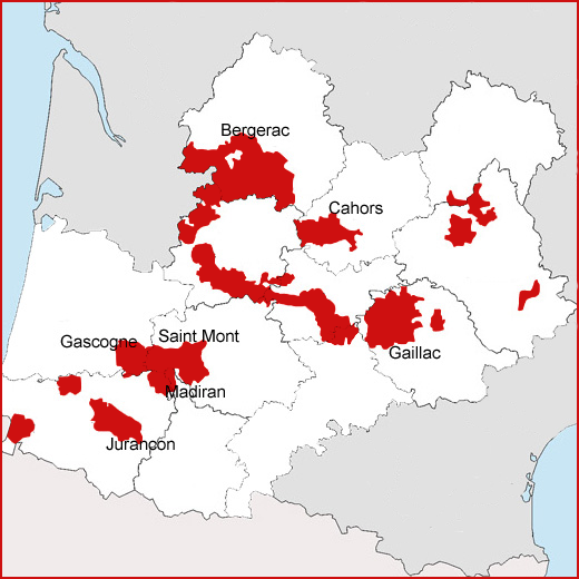 Wurden früher aus den Sorten Colombard und Ugni Blanc viele Grundweine für die Armagnac-Produktion erzeugt, keltert man aus diesen Sorten heute aromatische, frische, jung zu trinkende Weißweine. Besonders beliebt in der Gascogne ist Sauvignon Blanc . Die autochthonen Sorten Gros Manseng und Petit Manseng liefern delikate süßliche Weine (moelleux). Im Anbaugebiet Madiran dominiert die Tannat-Traube die Rotwein-Erzeugung, im Cahors ist es die Malbec. Aufstrebend ist die Region Gaillac.