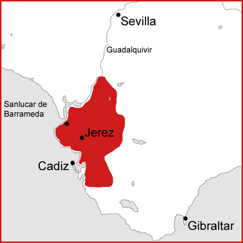 Sherry wird in dem kleinen Dreieck zwischen den Städten Sanlúcar de Barrameda, Jerez und Puerto de Santa Maria erzeugt. Sanlúcar liegt direkt an der Mündung des Guadalquivir (einer der größten Flüsse Spaniens) in den Atlantik, Jerez liegt ca. 30 km landeinwärts und Puerto de Santa Maria etwa 30 km weiter südöstlich am Atlantik kurz vor Cádiz. Die besten Böden sind durch einen hohen Anteil an Kreide leuchtend weiß und werden Albariza genannt. Trockener Sherry wir reinsortig aus der Sorte Palomino Fino erzeugt.