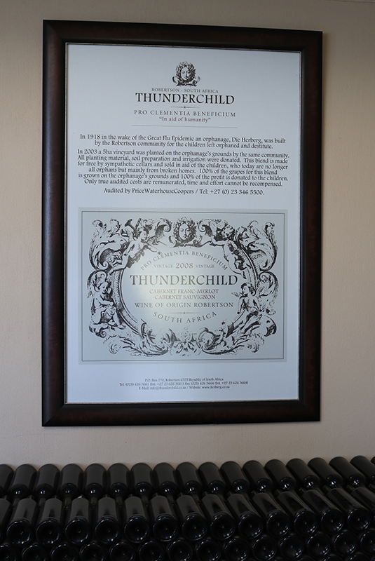 Im Jahr 2003 waren es nur noch wenige Hektar Land, bepflanzt mit Aprikosenbäumen, die keinen profitablen Ertrag mehr erbrachten. Da die Winzer um Robertson große Erfolge feierten, beschlossen sie, in einer gemeinsamen Anstrengung das Land mit Reben zu bepflanzen und zu bewirtschaften. Sie stellten Rebmaterial und Arbeitszeit, ihre Maschinen und Erfahrung kostenlos zur Verfügung. 2008 wurde die erste Lese für einen Qualitätsrotwein geerntet. Der berühmteste Winzer Robertsons – Abrie Bruwer von unserem Lieferanten Springfield Estate – vinifizierte aus den Sorten Cabernet Franc, Merlot und Cabernet Sauvignon den Qualitätsrotwein THUNDERCHILD.